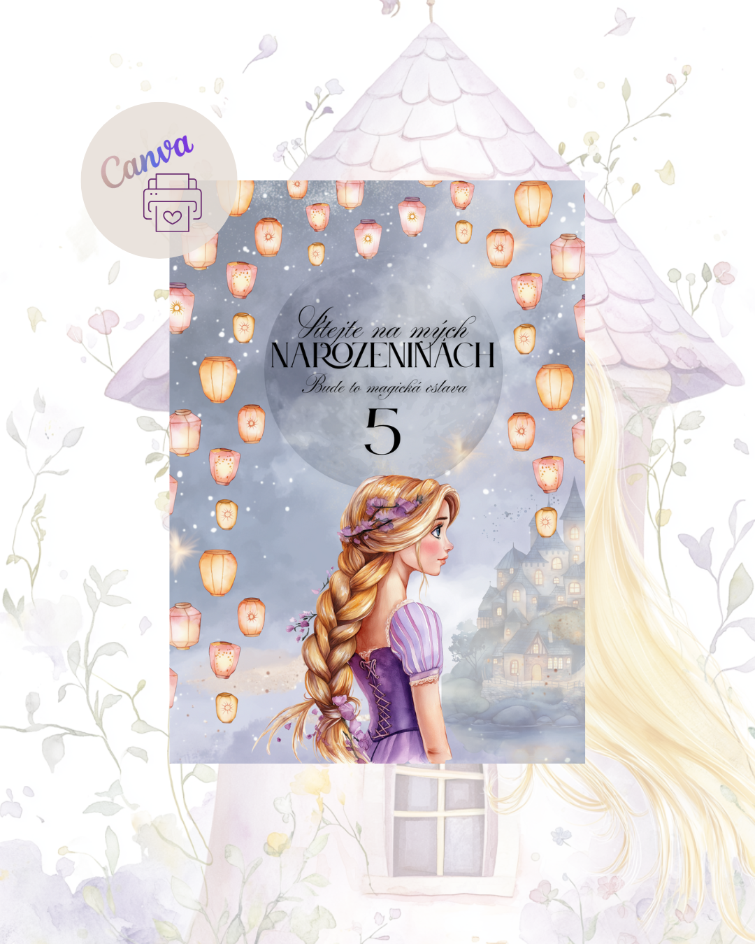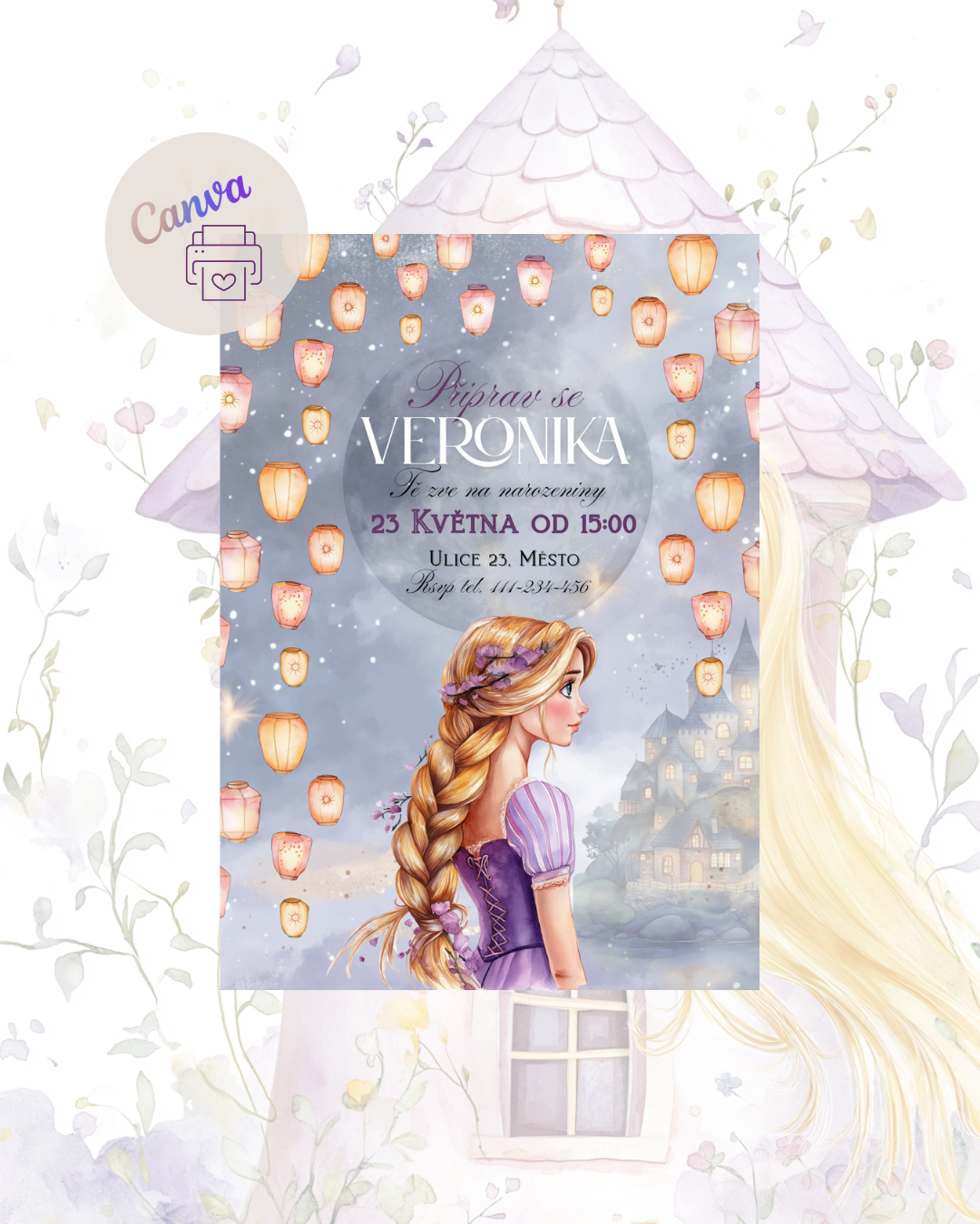 Digitální nebo tištěná pozvánka: Locika/Rapunzel a Lampiony štěstí