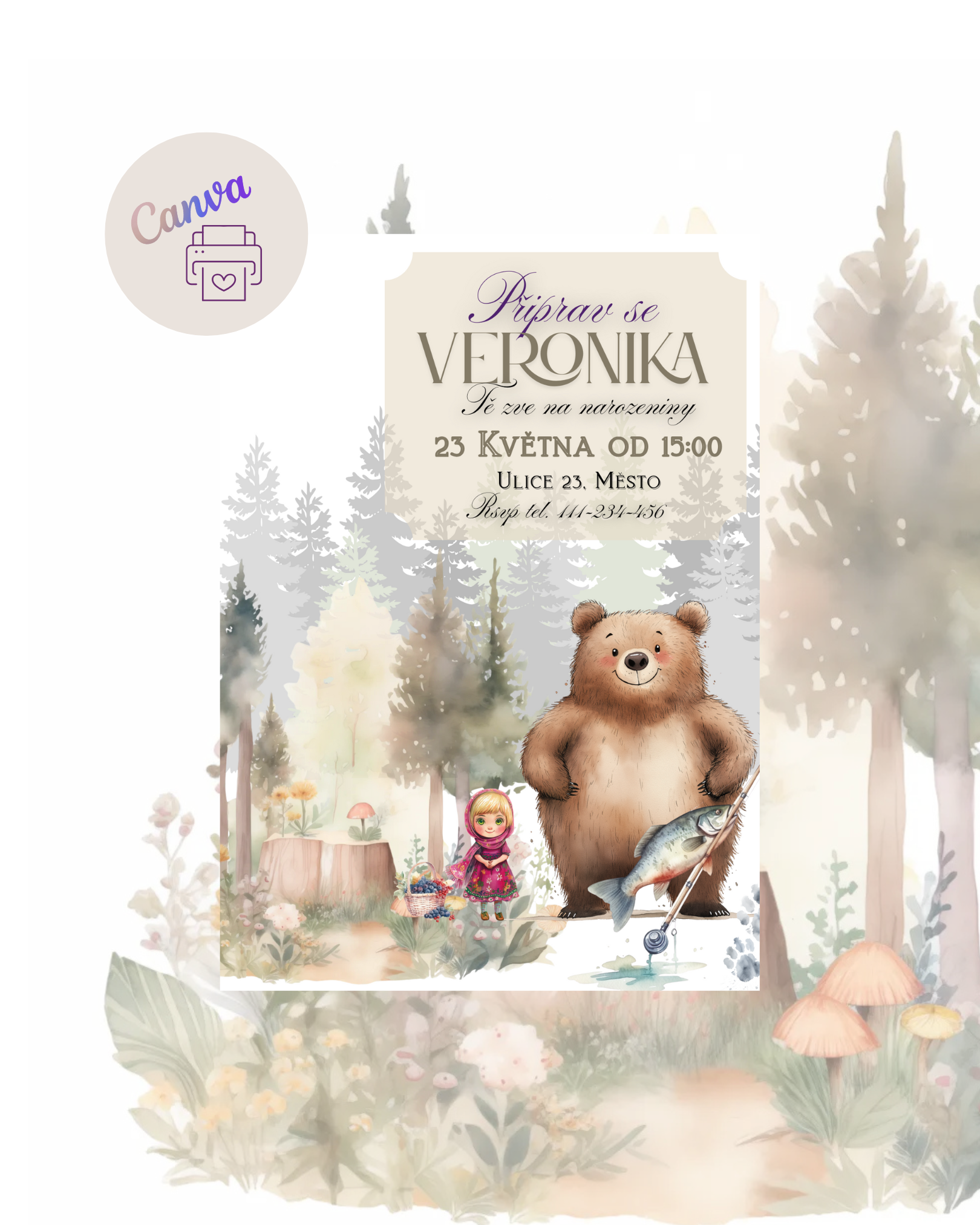 Digitální nebo tištěná pozvánka – Inspirovaná Mášou a medvědem