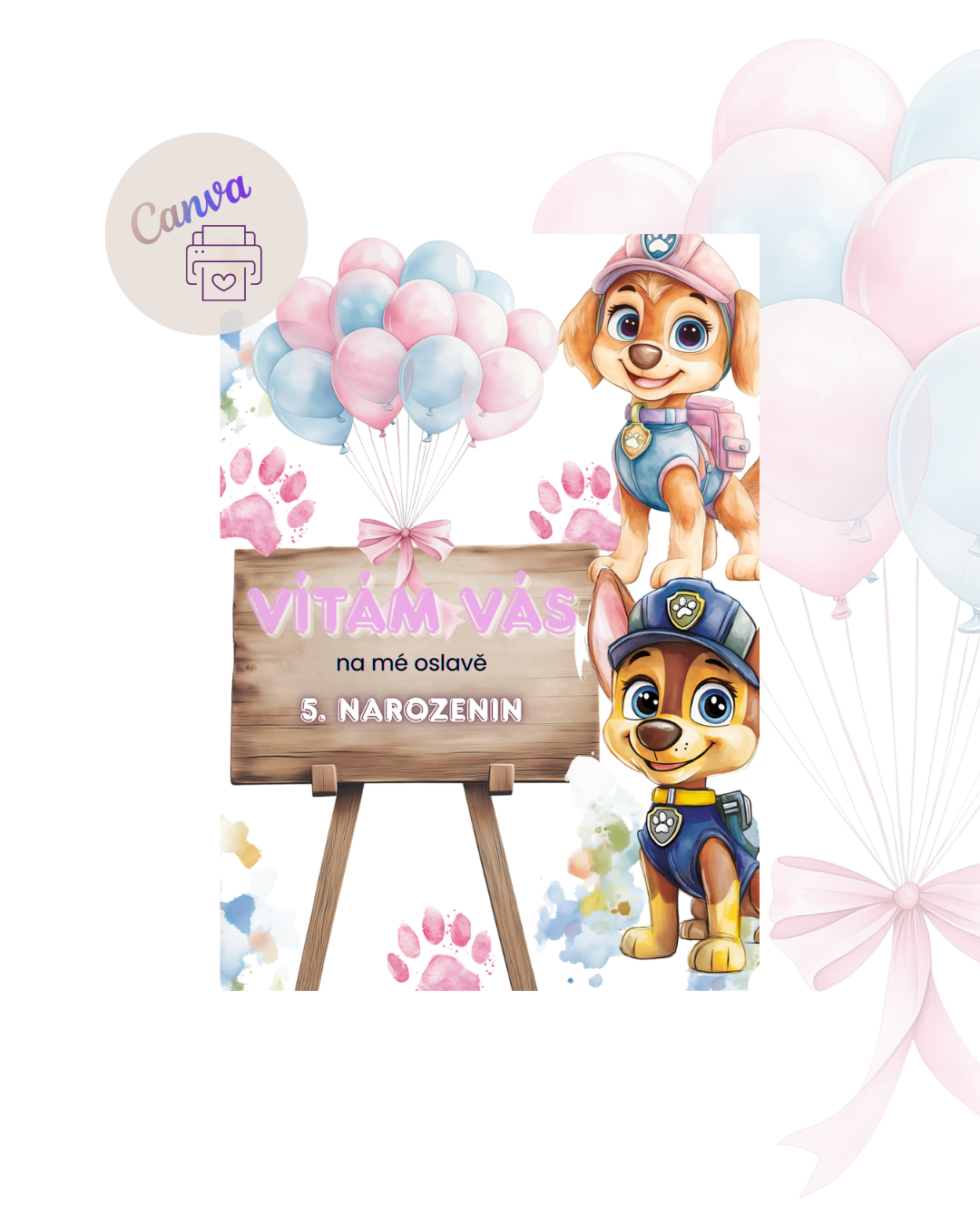 🎉 Digitální pozvánka s motivem Tlapkové Patroly – Skye & Chase 🐾