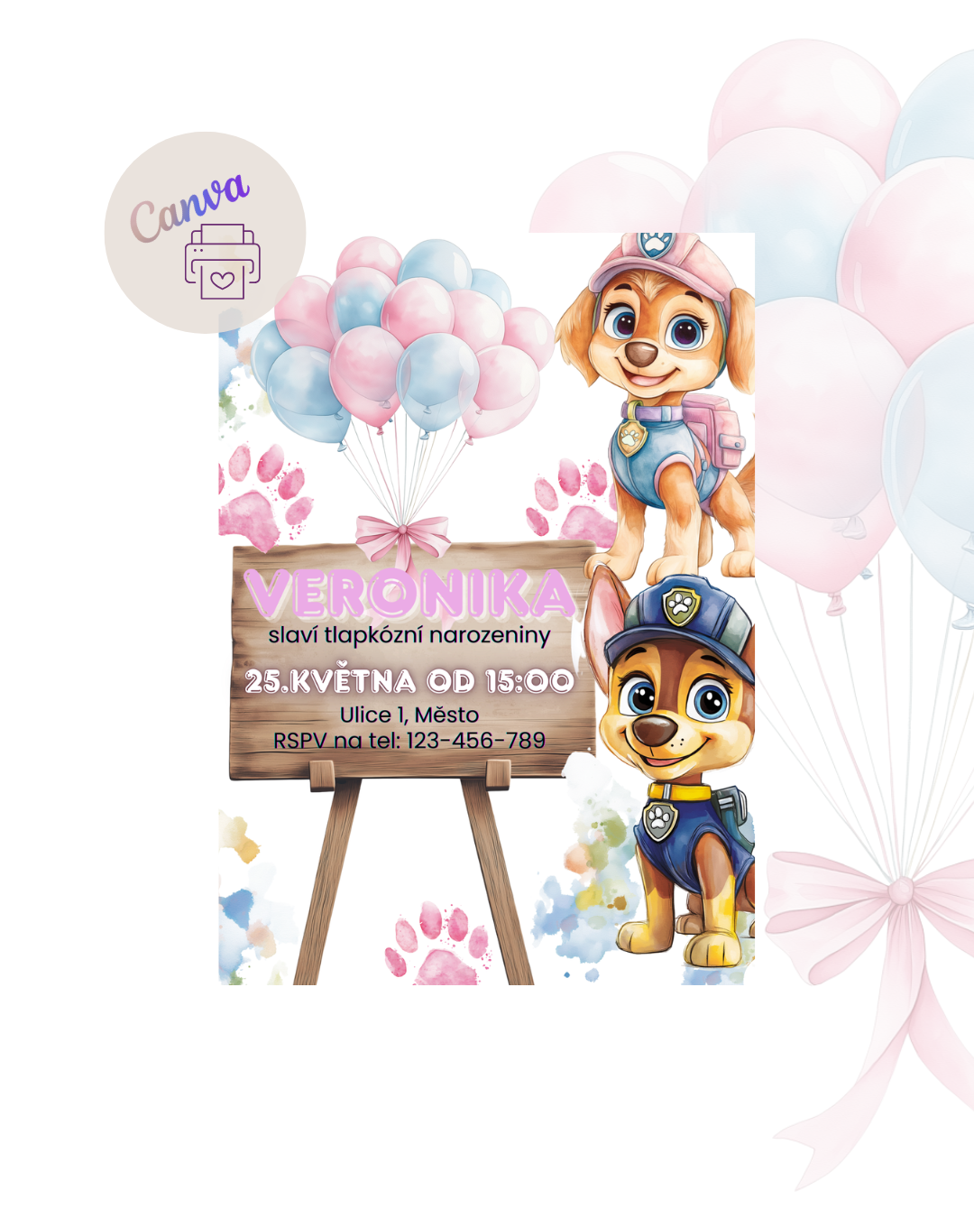 Digitální nebo tištěná pozvánka – Tlapková patrola inspirace