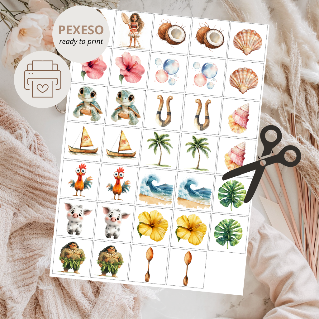 Digitální PEXESO připravené k tisku v tématu Vaiany