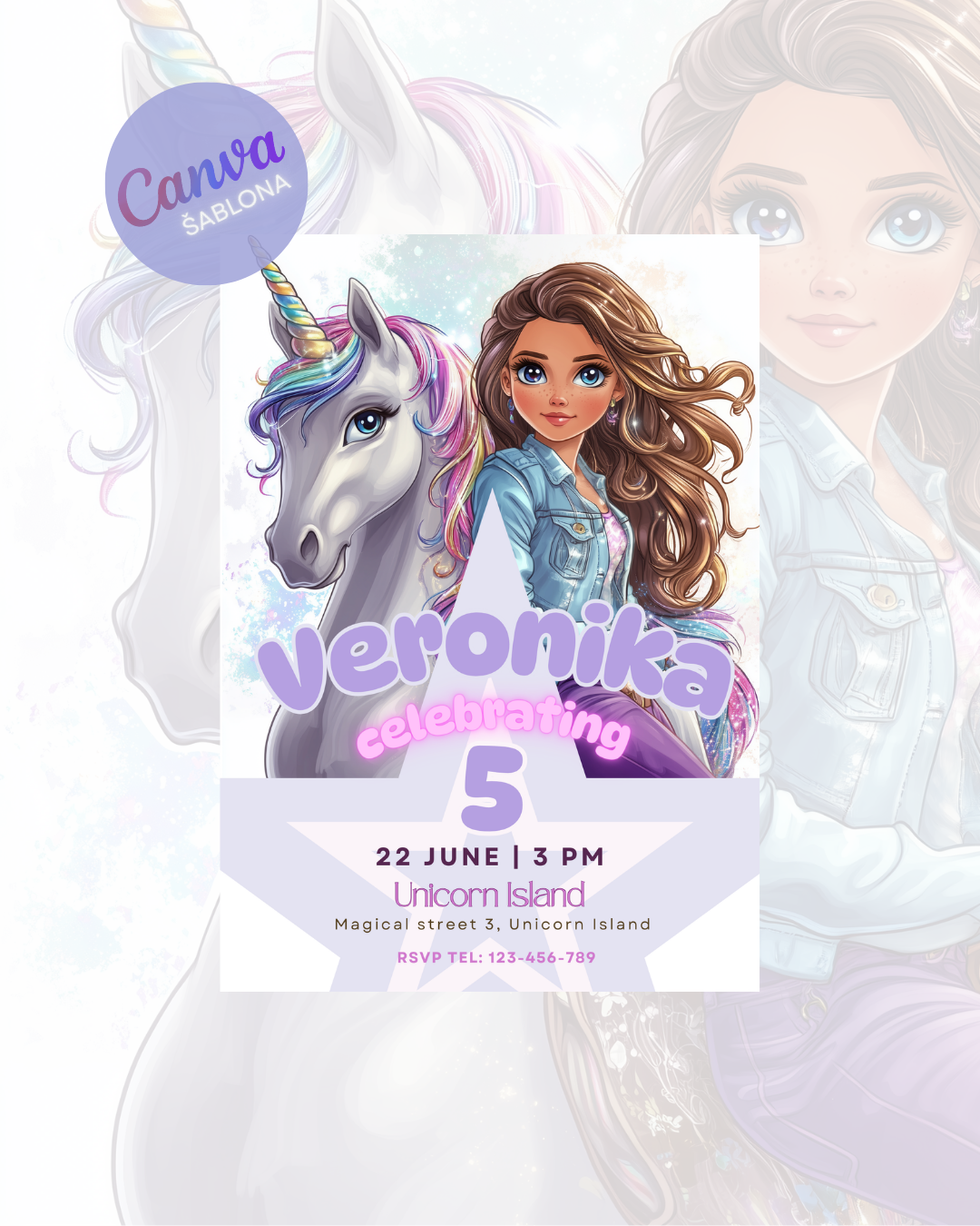 Tato jedinečná pozvánka ve stylu Jednorožčí akademie vás zavede do světa, kde se plní dětská přání a magie je na denním pořádku. Ideální pro malé princezny, milovnice jednorožců a kouzelných světů.