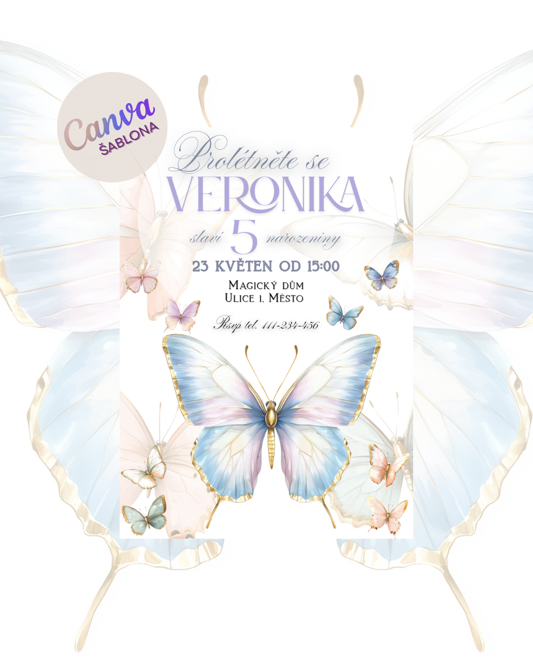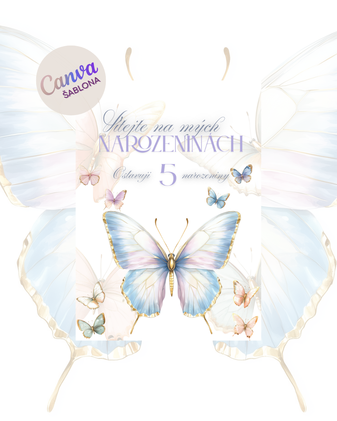 🦋 Digitální pozvánka s motýlkem – pro kouzelnou dětskou oslavu 🎉