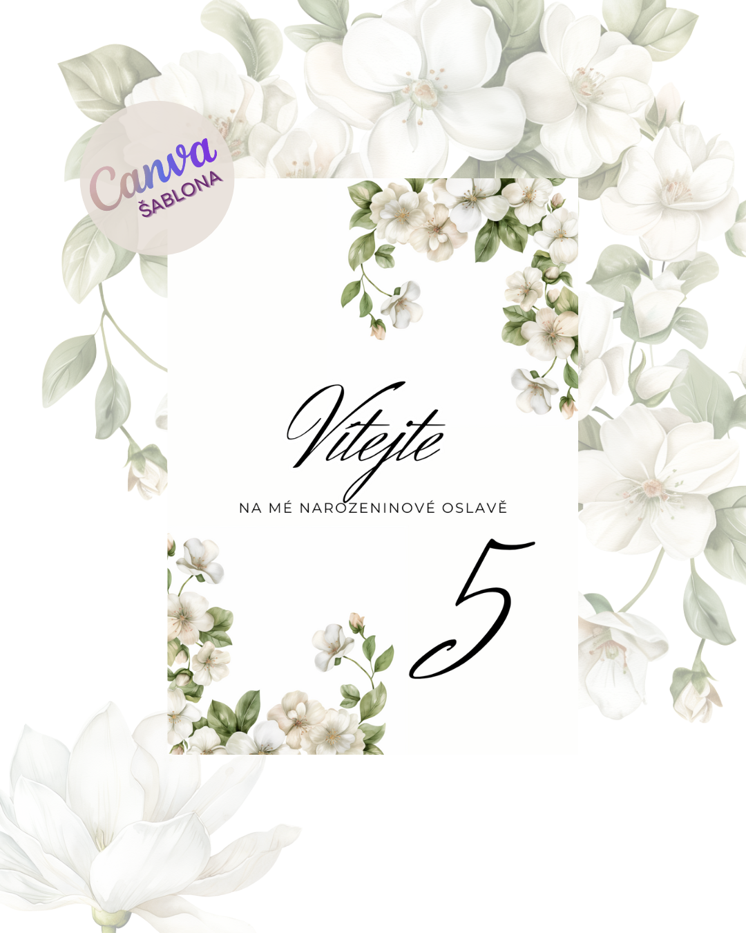 – Editovatelnou pozvánku v Canvě (bez nutnosti placeného účtu) Obsahem je také uvítací tabule, která je editovatelná také.
