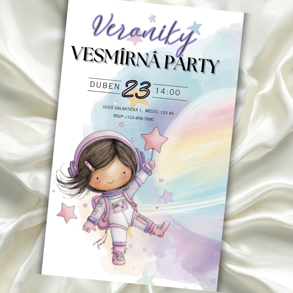 🏰 Digitální pozvánka – Holčička ve vesmíru